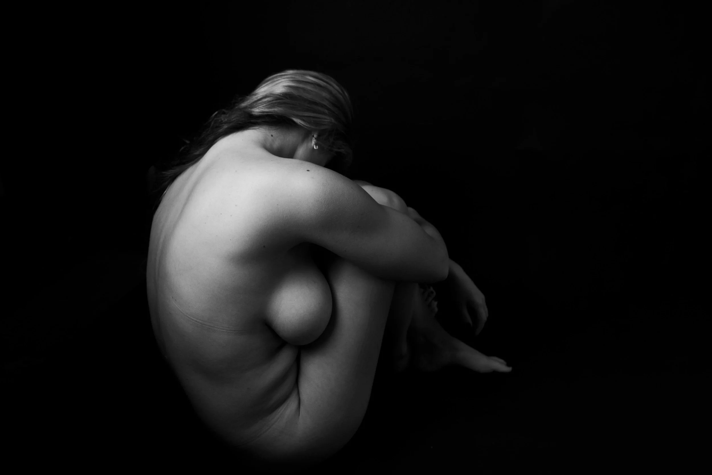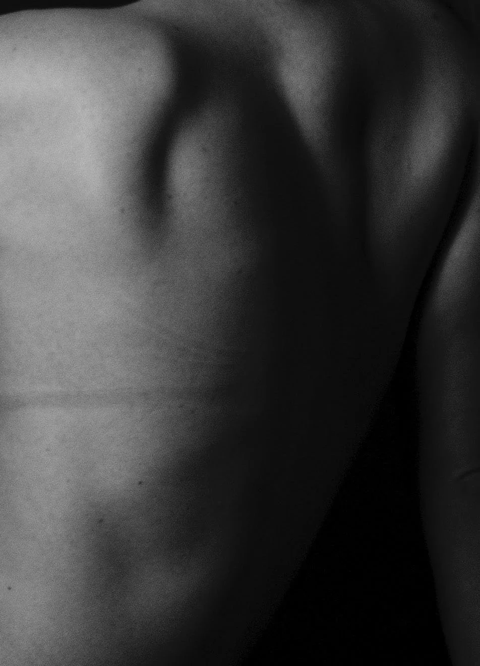 Like confessing to a stranger, it is always easier to express oneself when there is no fear of judgement Less is more as they say. I use this practice when photographing people or myself, by focusing on certain aspects or parts of the body and highlights to suggest different actions or points. The reason for this, is to withhold details. By capturing my body in these movements, that suggest intimacy, I make sure that there is still a level of anonymity. For example, facial features, a tattoo, a scare, a piercing will not be shown. So that the viewer can still insert themselves in the image. I wish for the images to be so dark and close, you feel that you are close enough to whisper.